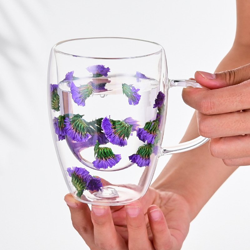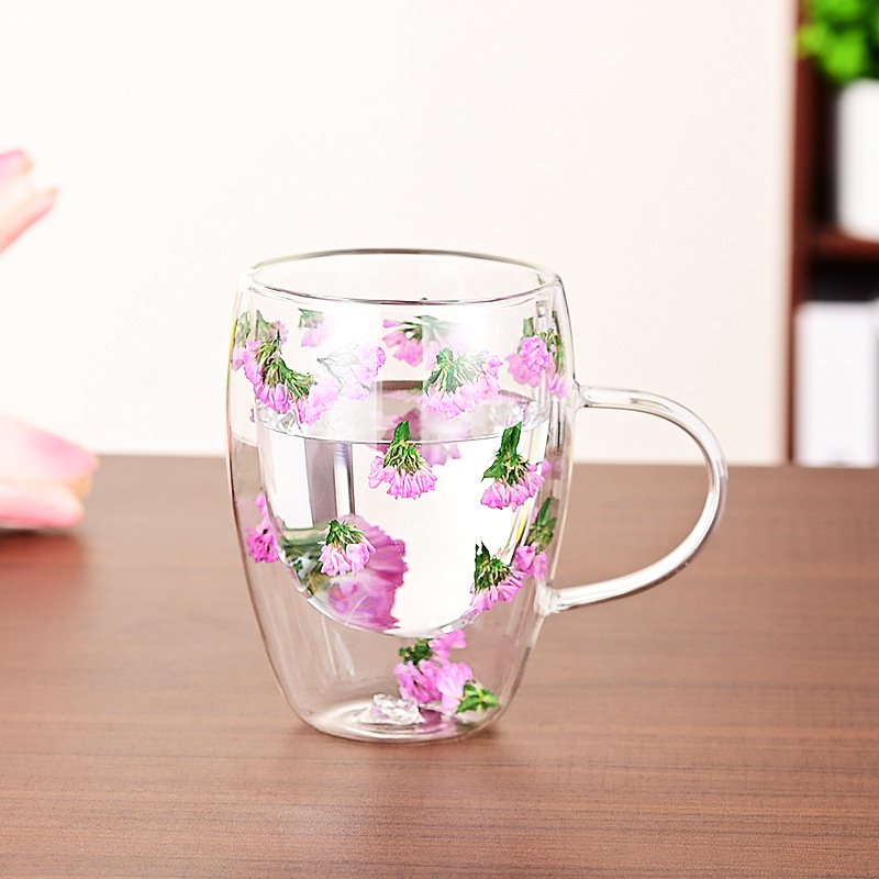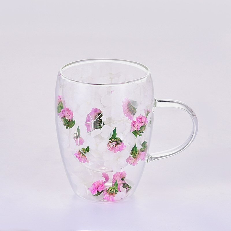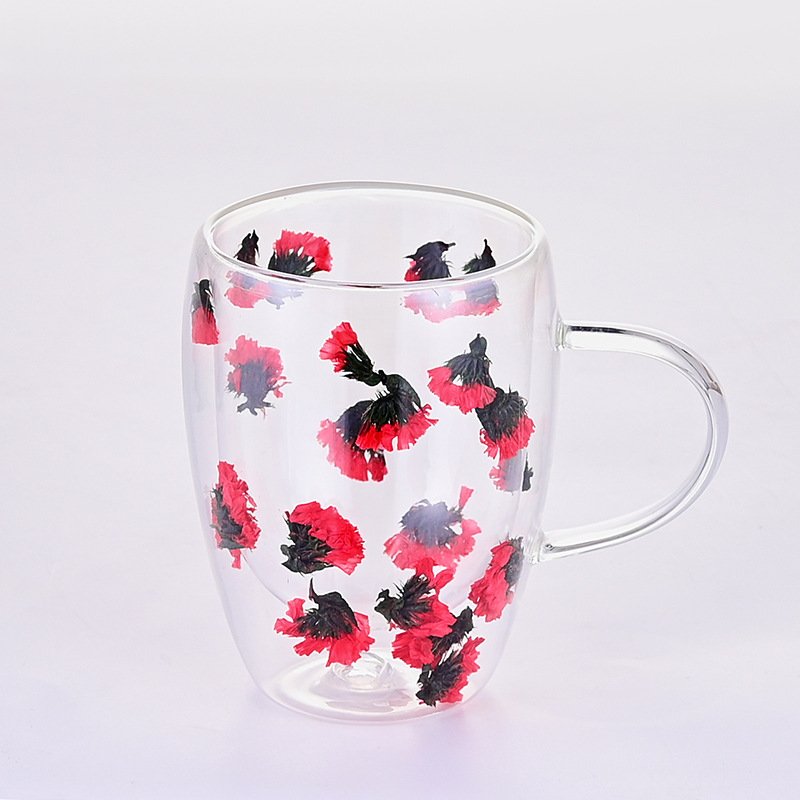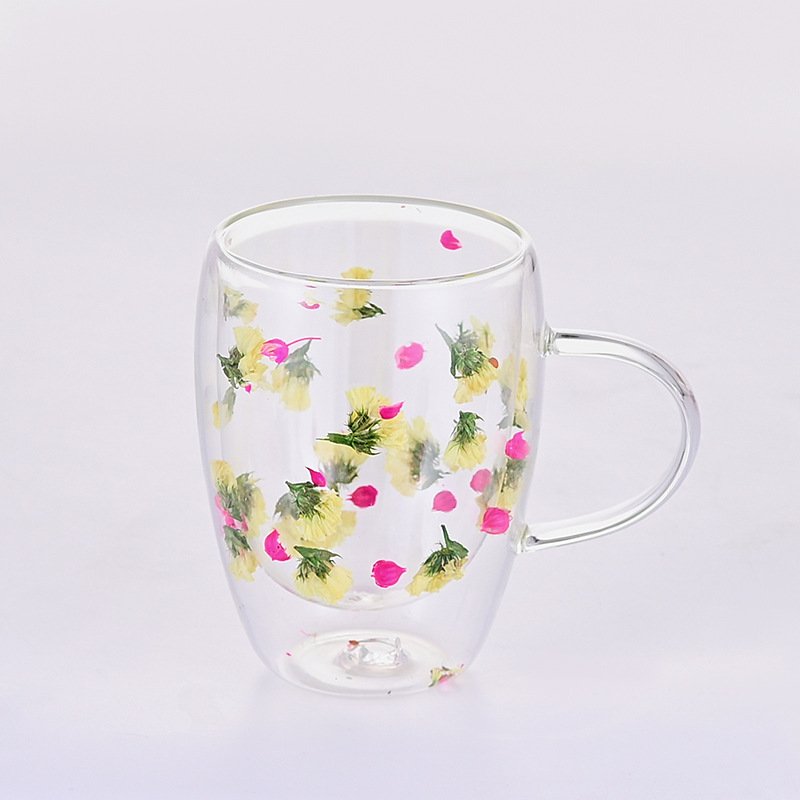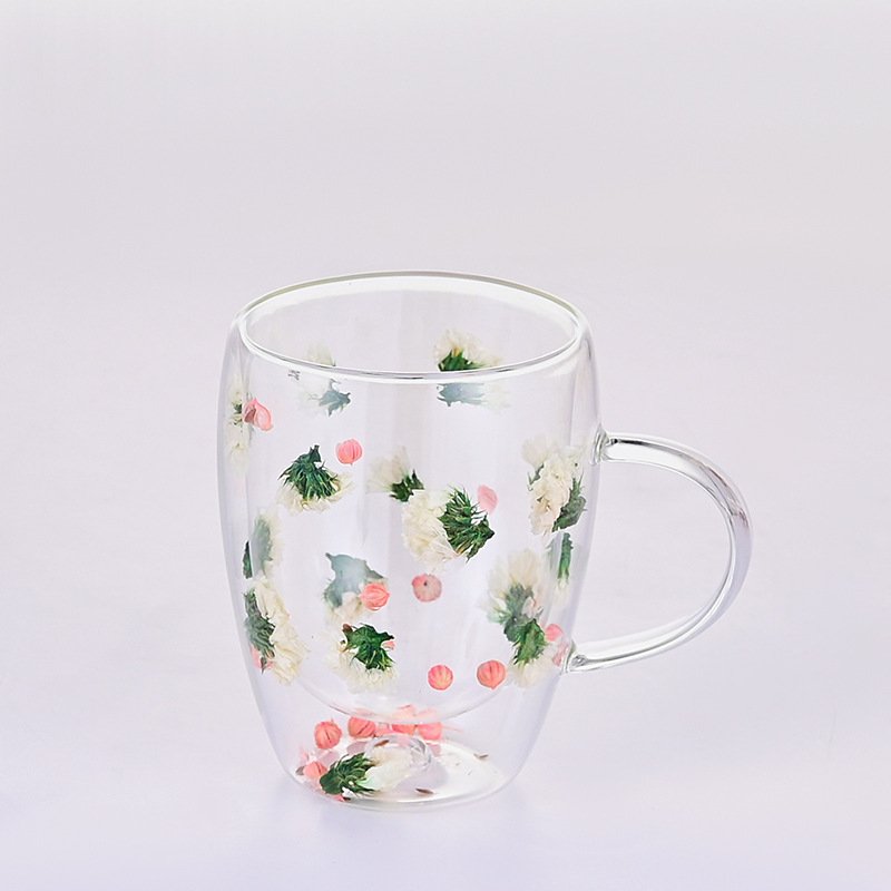 high borosilicate glass heat insulation and anti-explosion household inner layer flower milk coffee cups